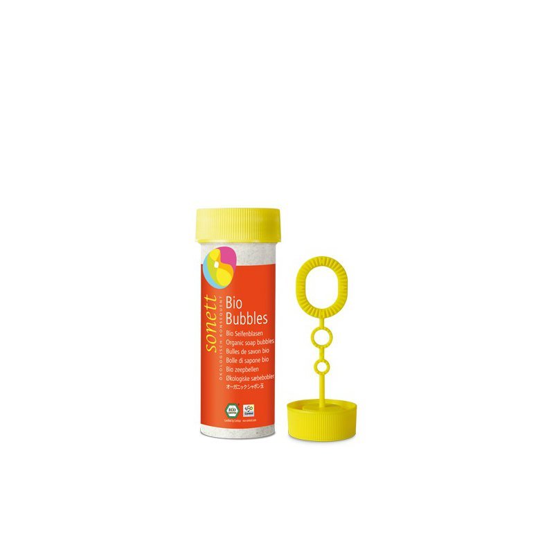 Baloane de sapun, ecologice, 45ml, Sonett Primele balonase de sapun din ingrediente de calitate ecologica. Cui nu-i plac baloanele de sapun? De la mic la mare, toata lumea le iubeste. Formeaza 3 marimi diferite de baloane. Compozitie: – glicerina vegetala ecologica 5-15%, alcool vegetal (etanol) ecologic 5-15%, surfactanti din zaharuri 5-15%, agent de ingrosare (xanthan)