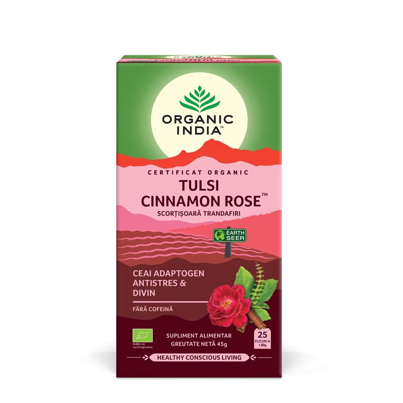 Ceai Tulsi (Busuioc Sfant) Scortisoara Trandafiri – Ceai Adaptogen Antistres si Divin, eco, 25 de plicuri, Organic India