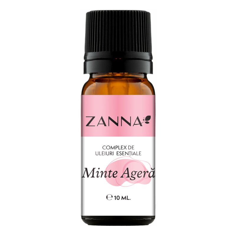 COMPLEX DE ULEIURI ESENTIALE MINTE AGERA, 10ML, ZANNA   Procesarea informatiilor, abilitatea de a invata si de aducere aminte se poate schimba de la o varsta la alta. Lipsa somnului, stresul, starea sedentara, dieta neechilibrata pot contribui la o memori in declin. Imbunatatirea memoriei necesita efort si practica la fel ca orice alta sarcina.   BENEFICII Uleiul esential Minte Agera este un produs natural, fara coloranti, care contine combinatia perfecta de uleiuri care contribuie sinergic la o buna functionare a mintii si a memoriei.   INGREDIENTE Ulei esential de lemn de santal: Lemnul de santal este unul dintre cele mai fine, profunde si bogate uleiuri. Reprezinta omul matur, complet, intelept (care incanta femeia). Omul altruist, plin de iubire, persoana constanta.  Ulei esential de melissa: Un aliat de exceptie in calmarea anxietatii, uleiul esential de melissa este utilizat in aromaterapie pentru inlaturarea starilor de insomnie si de agitatie. In medicina traditionala marocana, melissa era utilizata pentru proprietatile sale de calmare, ca sedativ al sistemului nervos central. Ulei esential de lavanda: Este un ulei care poate preveni si poate echilibra in egala masura . Ulei esential de chiparos: Chiparosul este un arbore vesnic verde, cu lemn de esenta tare, despre care se spune ca nu putrezeste niciodata. Cuvantul grecesc sempervirens , din care deriva numele botanic al arborelui, inseamna viata vesnica .  Ulei esential de imortelle: Un ulei esential rafinat, ce vindeca si protejeaza energetic. Imortelele au o aroma impresionanta, usor dulce, ca de miere. Difuzat in incapere, este un ulei protectiv energetic, calmeaza psihicul, intareste imunitatea, induce linistea si calmul.    UTILIZARE Adaugati cateva picaturi de ulei esential in aparatul de aromatrapie, in apa de baie sau in uleiul de masaj.   Uleiul esential Minte Agera nu este destinat pentru uz intern. A se evita contactul cu ochii si pielea.  Acest complex de uleiuri este recomandat pentru uz extern.   APLICARE TOPICA Uleiul esential Minte Agera si alte uleiuri esentiale sunt rapid absobite in fluxul sangvin cand sunt aplicate pe piele. In general este necesar ca uleiul esential sa fie diluat cu un ulei purtator (ulei de cocos, ulei de masline, mai exact uleiuri presate la rece). Acest lucru previne potentiale iritatii ale pielii.