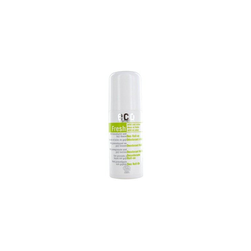 Deodorant bio roll-on cu rodie – Eco Cosmetics Descriere Deodorant roll-on cu extract de rodie si fructe de goji Este un deodorant eficace, cu efect imediat si cu protectie indelungata, de pana la 24h. Previne mirosul neplacut de transpiratie si aparitia germenilor si bacteriilor in zona subratului. Este delicat si ingrijeste totodata pielea delicata a axilei. Certificat BIO Ecocert. Produsul este : 100% natural, 100% vegan, nu a fost testat pe animale, nu contine OMG (organisme modificate genetic). NU contine: aluminiu, parabeni, parfum sintetic sau coloranti, ingrediente petrochimice, PEG, SLS, parafina, silicon etc. Ingrediente: Aqua, Butyrospermum Parkii*, Hydrogenated Coco-Glycerides, Simmondsia Chinensis Oil*, Punica Granatum Fruit Water*, Zinc Oxide, Lycium barbarum Fruit Extract*, Oenothera Biennis Oil*, Tocopherol, Lecithin Hidrogenated, Lecithin, Glycerin, Caprilyc/Capric Triglyceride, Xanthan Gum, Triethyl Citrate, Alcohol, Parfum, Limonene, Linalool, Citronellol * din agricultura ecologica Mod de utilizare : aplicati la subrat, pe pielea curata, ori de cate ori este nevoie.