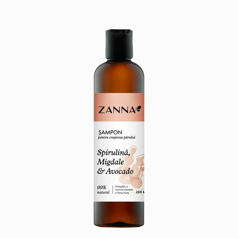 Sampon cresterea parului cu spirulina, migdale si avocado, 250ml, Zanna