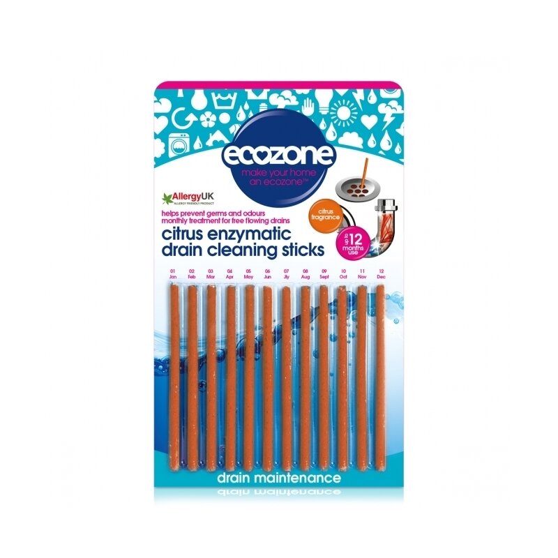 Stick pentru desfundarea tevilor si eliminarea mirosului neplacut, cu citrice, 12 buc, Ecozone Aceste betisoare reprezinta o noua inovatie in intretinerea eficienta a scurgerilor. Stick-ul foloseste bacterii naturale puternice si enzime pentru a distruge aproape orice (spuma de sapun si alte materii organice) care blocheaza tevile si provoaca mirosuri neplacute. Lucrand activ pentru a preveni aparitia obstacolelor, aceste stick-uri inteligente va pot ajuta sa va protejati scurgerile pe tot parcursul anului. Caracteristici: – Sigure pentru fosa septica si viata acvatica – Distrug grasimea si alimentele care se pot acumula zilnic in canalele de scurgere – Mentine scurgerea fara mirosuri – Fiecare pachet contine 12 stick-uri pentru utilizare lunara pentru un an Mod de folosire: Stick-urile sunt foarte usor de folosit. Se scoate un stick (se verifica calendarul de pe ambalaj pentru luna in curs) si se baga in gaura de scurgere si se lasa sa actioneze. Nu indepartati bara de scurgere. Repetati in fiecare luna pentru a mentine tevile curate, fara mirosuri neplacute. Ingrediente: 2-Oxapanone, Homopolymer, Oxydi-2, 1-Ethanedyl Ester, Bis (2(2-Butoxyethoxy)Ethil)Adipate, Calcium Carbonate, Sodium Sulphate, Wheat flour, Carboxymethylcellulose, Sodium Chloride, Sodium Lauryl Sulphate, Subtilisin, Amylase, Dye, Lipase, Bacterial Culture Non-Pathogenic, Perfume (Geraniol, Limonene, Butylphenyl Methylpropional). Pentru o casa ECO, alege in siguranta produsele Ecozone, pentru ca: – sunt produse cu ingrediente derivate din plante – sunt eco-friendly – sunt non-toxice – sunt sigure pentru fosa septica – gama pt bebelusi este testata dermatologic pt piele sensibila – sunt prietenoase si sigure pentru animalele de casa – nu contin ulei de palmier – contin enizme si NU ingrediente caustice – ambalajele sunt 100% biodegradabile – nu contin fosfati Produs in UK.