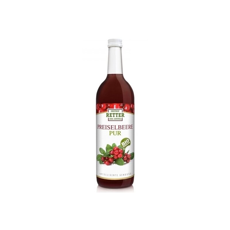 Suc de merisor pur bio, 750ml, Retter   Sucurile bio Retter sunt pure, fara nici un fel de adaos, obtinute prin presarea fructelor. Numai fructele complet coapte din soiurile de superfructe selectate din cele mai bune locatii sunt folosite pentru suc. Contin antioxidanti cum ar fi fenolii (tanin, flavonoide, etc.) Agitati sticla inainte de folosire, sucul este nefiltrat si astfel depunerile sunt normale.   Sugestie de folosire:  150ml – 200ml zilnic. Se poate si dilua cu apa in proportie de 2/3.   Ingrediente:  100% suc de merisor* *din agricultura ecologica   Valori nutritionale/100ml: Energie: 137kj / 32kcal Grasimi: 0.3g din care saturate 0g Carbohidrati: 7.1g din care zaharuri 7g Proteine: 0.3g Saruri: