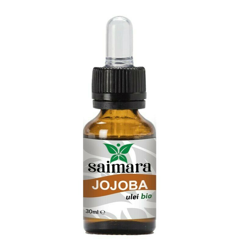 Ulei de Jojoba Bio, 30ml, Saimara   Ten – Uleiul de jojoba previne imbatranirea prematura a pielii, imbunatateste textura pielii, combate ridurile si netezeste liniile fine. Uleiul de jojoba este ideal pentru toate tipurile de ten, pentru ingrijirea gatului si decolteului, pentru hidratarea corpului si a zonei contur ochi. Uleiul de jojoba, similar cu sebumul produs in mod natural de piele, este ideal pentru tenul matur, ridat, uscat, deshidratat, devitalizat, sensibil, mixt, gras, cu tendinta acneica. Este un ulei noncomedogenic (nu blocheaza porii) cu proprietati hidratante, antioxidante, calmante, anti-inflamatorii. Uleiul de jojoba hraneste intens pielea din jurul ochilor, estompeaza liniile fine si reda pielii elasticitatea pierduta. Rezultatul consta intr-o piele hidratata, catifelata si elastica. Datorita continutului mare de vitamina E, uleiul de jojoba protejeaza pielea impotriva radicalilor liberi responsabili de imbatranirea prematura si deteriorarea pielii. Hidrateaza pielea in profunzime, atenueaza liniile fine si ridurile, mentine pielea neteda, elastica, tanara si luminoasa. Uleiul de jojoba inlocuieste cu succes balsamul de buze. Este ideal pentru ingrijirea buzelor uscate si crapate. Uleiul de jojoba poate fi folosit si ca demachiant pentru inlaturarea machiajului. Inlatura eficient rimelul, este delicat cu ochii si pielea, hidrateaza genele si pielea din jurul ochilor.   Corp – uleiul de jojoba se poate folosi si ca ulei de masaj pentru corp. Se poate folosi ca atare sau in combinatie cu uleiuri esentiale. Uleiul de jojoba nu are miros si din acest motiv poate fi folosit in aromoterapie ca ulei purtator pentru diluarea uleiurilor esentiale. In functie de uleiurile volatile folosite, uleiul de masaj poate sa aiba efect energizant, relaxant, calmant, antidepresiv, etc Gratie proprietatilor sale emoliente, uleiul de jojoba poate fi aplicat dupa epilat si dupa expunerea la soare pentru calmarea pielii iritate. Seamana cu sebumul secretat de piele, nu incarca porii, se absoarbe rapid si lasa pielea corpului mai fina, supla si hidratata.   Par – uleiul de jojoba contine vitamine cu proprietati antioxidante, care combat deterioararea si caderea parului, si vitamina E cu nenumarate proprietati pentru podoaba capilara (stimuleaza circulatia sanguina la nivelul scalpului, reduce caderea parului, echilibreaza secretia de sebum, hidrateaza firul de par). Jojoba imbunatateste starea de sanatate a firelor de par, hidrateaza firul si scalpul, previne despicarea varfurilor, protejeaza de efectele negative ale radicalilor liberi. Datorita uleiului de jojoba, parul se regenereaza mai rapid, devine mai flexibil, mai puternic, dar si mai stralucitor.   Ulei de jojoba – ingredient cosmetic Se poate folosi ca ingredient cosmetic pentru realizarea de cosmetice handmade: creme antirid pentru ten, creme de noapte regenerante, serumuri pentru ten, masti pentru ten, creme pentru corp si maini, uleiuri de masaj, sampoane, balsamuri si masti de par.   Ulei de jojoba – ulei purtator pentru uleiuri esentiale Uleiul de jojoba este un excelent ulei baza pentru diluarea uleiurilor esentiale.   Presat la rece. 100% pur. Obtinut din plante BIO.   Ingrediente: simmondsia chinensis (jojoba) seed oil * *ingredient bio   Utilizare ulei de jojoba: ten: se aplica pe pielea umeda si se maseaza pana cand intra in piele; par: se aplica cateva picaturi pe parul umed, se lasa sa actioneze minim 30 de minute dupa care se samponeaza. Pentru un efect sporit, se acopera parul cu o casca de dus si un prosop si se lasa sa actioneze cel putin 1 ora.   Depozitare: A se depozita in spatii uscate la temperaturi sub 25 ° C, departe de lumina directa a soarelui.