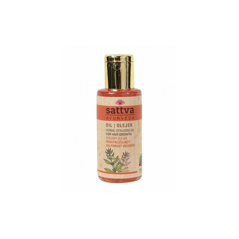 Ulei pentru cresterea parului, 100ml, Sattva Ayurveda   Contine uleiuri care hranesc si catifeleaza parul (susan, cocos, germeni de grau, migdale dulci si jojoba), extracte vegetale care stimuleaza cresterea parului (rozmarin, amla, bhringraj, nard), combat caderea parului (amla, bhringraj), ingrediente care mentin scalpul curat si regleaza secretia de sebum (neem, nagarmotha, rozmarin).   Contine: uleiuri de susan, cocos, floarea soarelui, germeni de grau, migdale dulci si jojoba, neem, amla, nard, amla, shikakai, lemn dulce, nagarmotha, bhringraj, rozmarin.   Beneficii ulei revitalizant par Sattva Ayurveda: parul creste mai repede si mai sanatos radacina parului este mai puternica reduce semnificativ caderea parului scalpul este hidratant in profunzime   Utilizare: se aplica cateva picaturi la nivelul scalpului si se maseaza cateva minute. Se lasa sa actioneze minim 1 ora dupa care samponeaza.   100% natural. Reteta Ayurvedica. Made in India.   Ingrediente ulei de par stimulare crestere par Sattva Ayurveda: Sesamum Indicum (Sesame) Seed Oil, Cocos Nucifera (Coconut) Oil, Helianthus Annuus (Sunflower) Seed Oil, Triticum Vulgare (Wheat Germ) Oil, Prunus Amygdalus Dulcis (Almond) Oil, Azadirachta Indica (Neem) Seed Oil, Nardostachys Jatamansi Rhizome Root Extract, Emblica Officinalis (Amla) Fruit Extract, Simmondsia Chinensis (Jojoba) Seed Oil, Acacia Concinna (Shikakai) Fruit Extract, Glycyrrhiza Glabra (Licorice) Root Extract, Cyperus Scariosus (Nagarmotha) Root Extract, Eclipta Prostrata (Bhringraj) Leaf Extract, Rosmarinus Officianlis (Rosemary) Leaf Extract, Parfum. **datorita ingredientelor naturale din compozitie, culoarea si mirosul produsului se poate schimba in timp. Eficacitatea produsului ramane neschimbata.